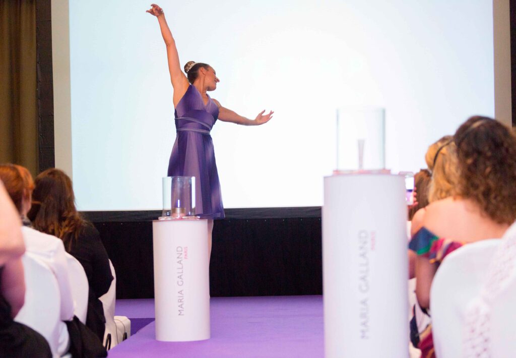 El programa contó con la presencia de Maria Galland, propietaria de la marca, y combinó la presentación oficial de la línea con una pasarela vestida en el color corporativo malva, donde los productos cobraron vida a través de la actuación de una bailarina. Además, se organizaron talleres especializados con traducción simultánea, garantizando que toda la información fuera accesible para los invitados.