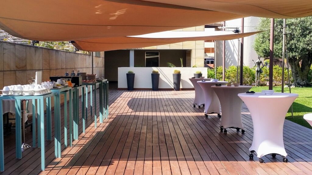 El catering incluyó almuerzos tipo buffet y cenas en venues selectas, cuidando la presentación y los sabores internacionales de los asistentes.